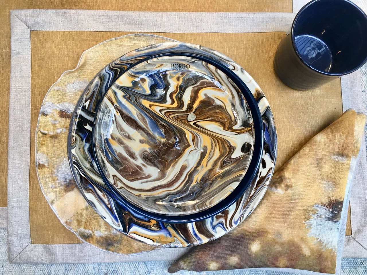 La couleur est ultra présente dans sa vaisselle qui donne à ses tables un éclat unique.