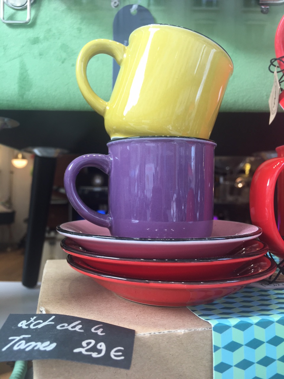 La boutique est lumineuse. La vaisselle colorée s’exprime à merveille dans ce cadre épuré, et il faut bien avouer que tout donne envie. Le couple à l’origine de ce studio de design s’attache a travailler avec des artisans qu’ils connaissent et avec lesquels ils ont établi une véritable relation de confiance.