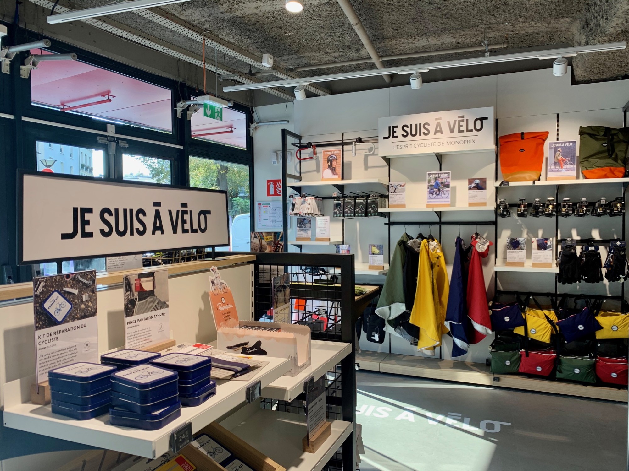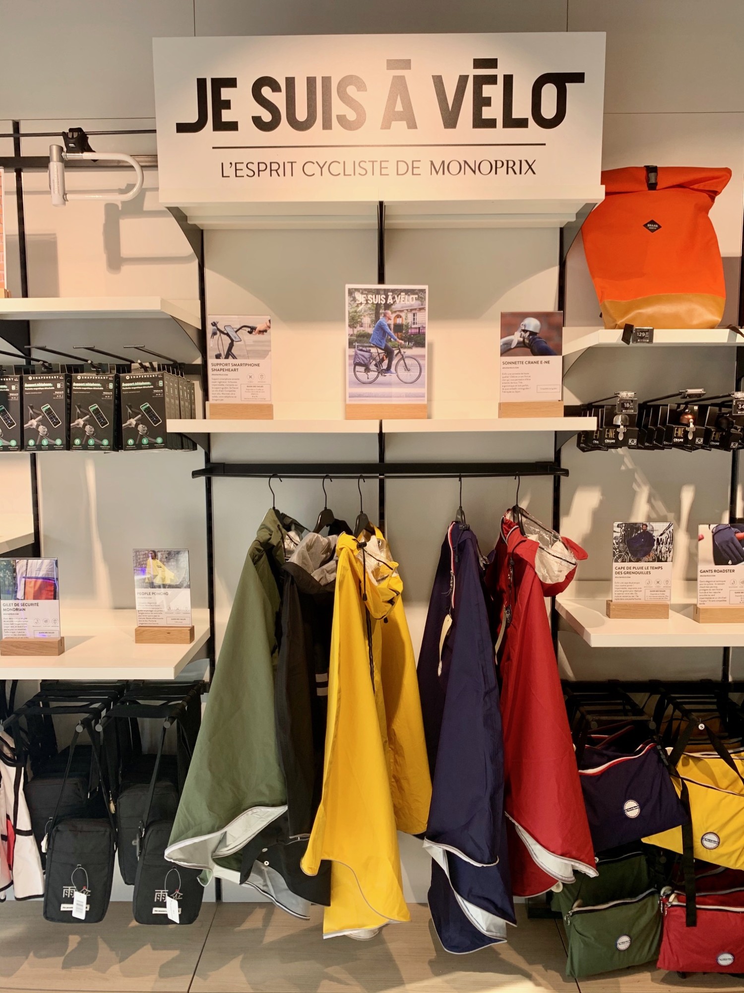 Monoprix ne pouvait pas passer à côté de cette tendance qui s’impose dans la capitale et ailleurs : les déplacements à vélo. Aussi, il est naturel qu’on y trouve un superbe corner dédié à la petite reine. Vélos pliables, casques trendy, et cape anti-pluie aussi.