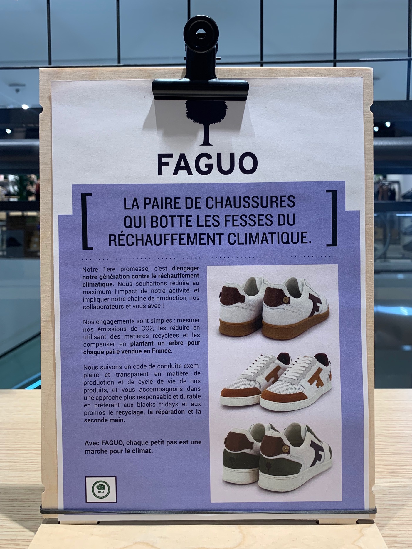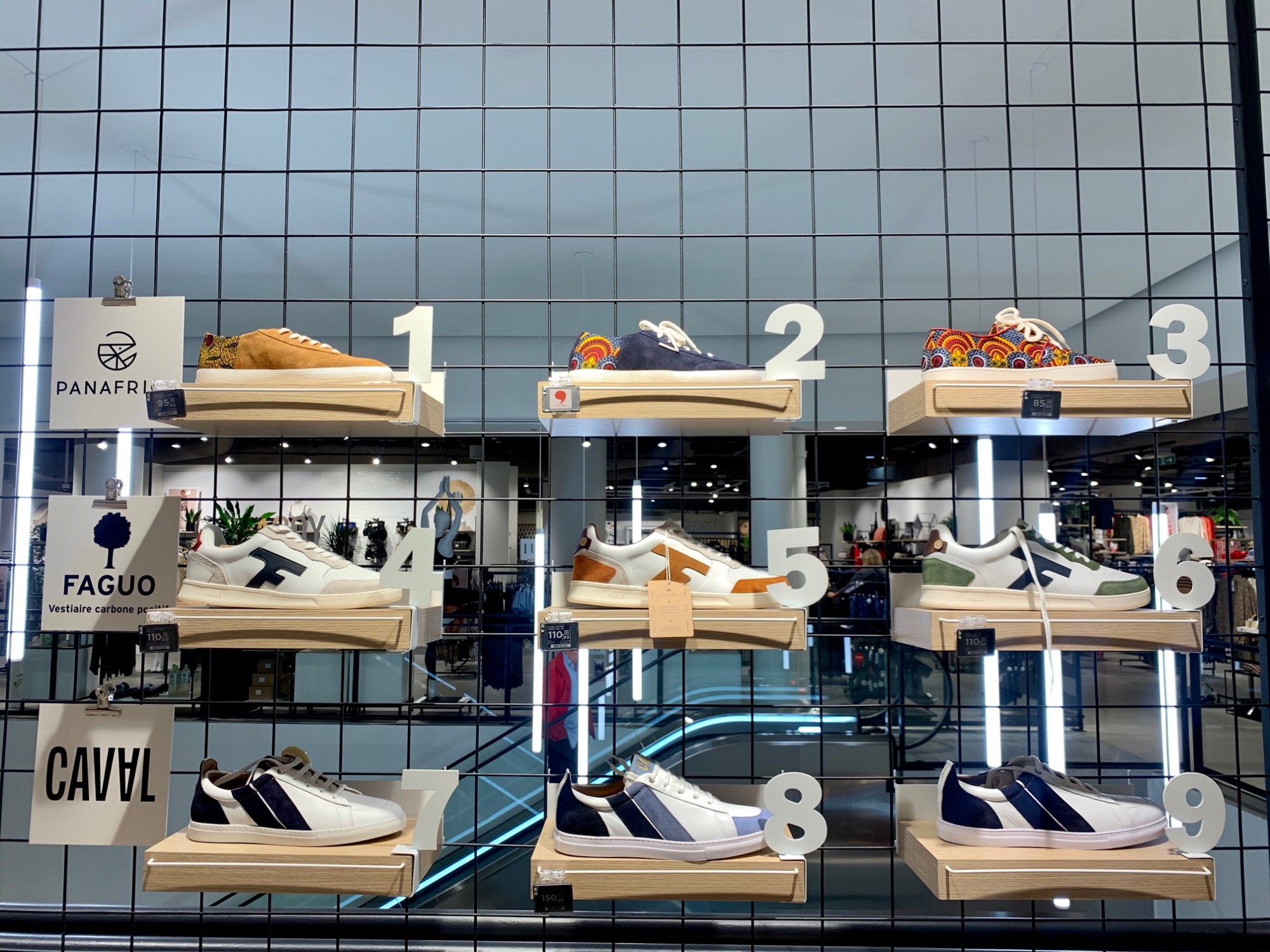 Le Monoprix Montparnasse organisera régulièrement des ateliers pour recycler, réparer, collecter les vêtements usagés. Pour le reste, le coton bio est privilégié, ainsi que les marques aux valeurs affirmées. Par exemple dans l’espace baskets , ce sont les modèles désormais familiers de Faguo, Caval ou Panafrica que vous pourrez acquérir !
