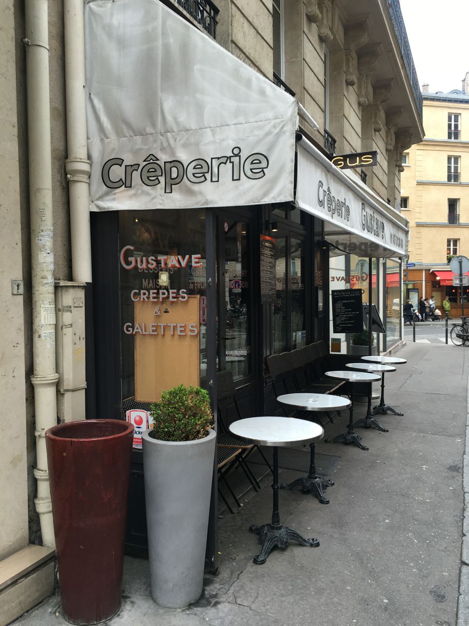 Petite rue, large choix ! En effet, les restaurants se bousculent rue Gustave Courbet, de façon assez inattendue d’ailleurs. Vient ensuite une crêperie : Gus crêperie.